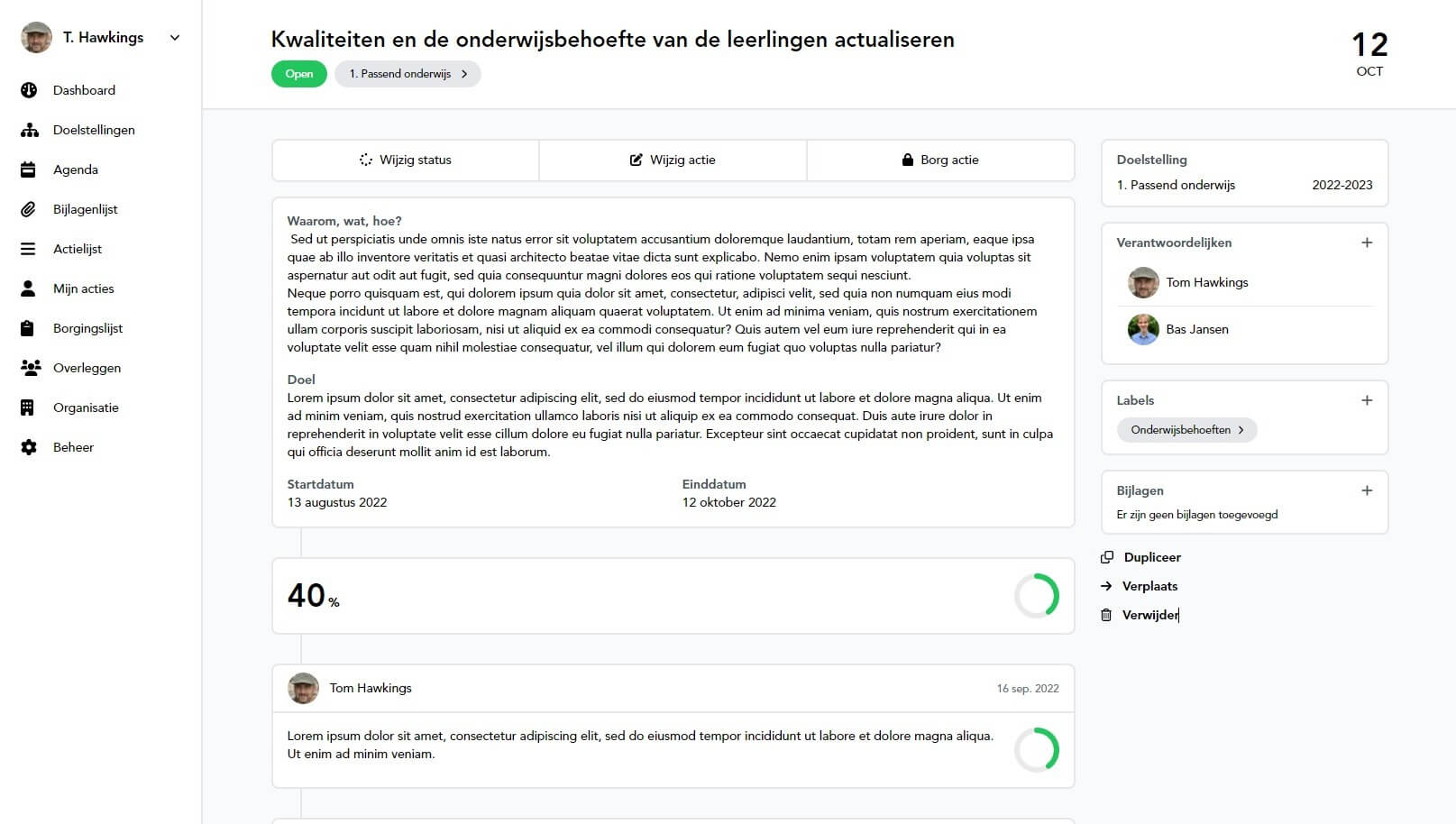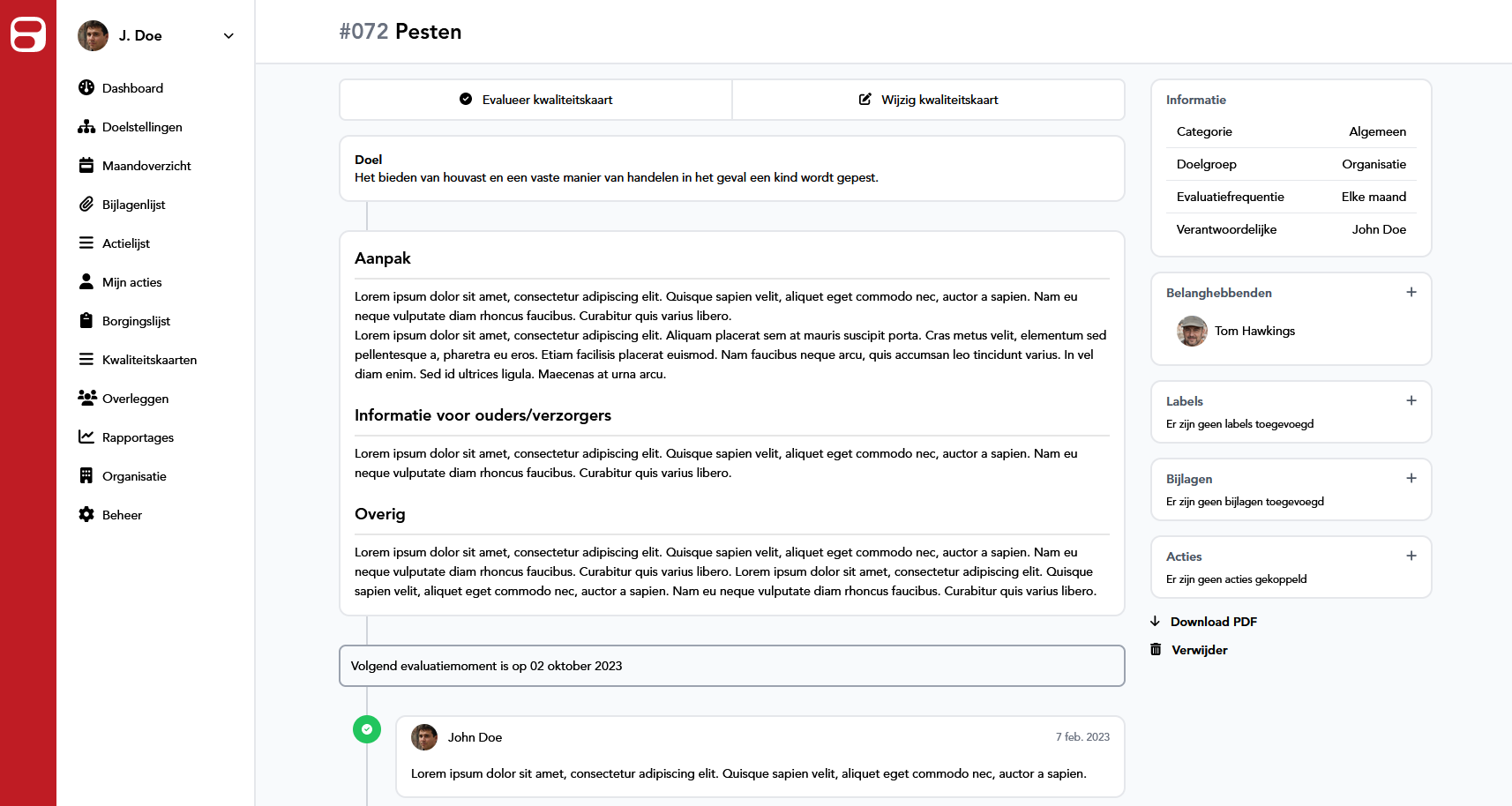 Qualityboard biedt de mogelijkheid om voltooide acties veilig te bewaren en te borgen, zodat u altijd bewijs heeft van de uitgevoerde acties en u kunt voldoen aan eventuele audit- en compliance-eisen.