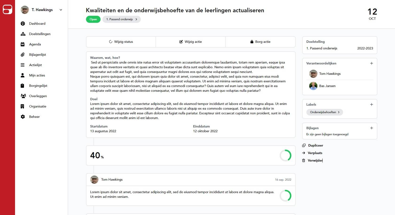 Van het stellen van doelen tot het meten van resultaten, Qualityboard helpt uw organisatie om gefocust te blijven op haar doelstellingen en stelt u in staat om inzicht te krijgen in de voortgang en prestaties op alle niveaus van de organisatie.